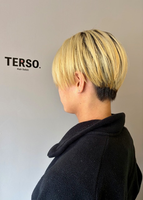 ホントはカラーのリタッチからのカットでしたが、時間が無くて急遽、カットだけに変更になり、トップは長めで、周りをガッツリ3mmで刈り上げてグラボブ系に