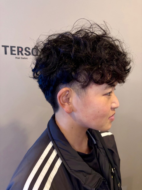 なかなか女性には、受け入れづらいヘアスタイルですが、その子の個性を引き出して、カットにパーマをミックスしました。