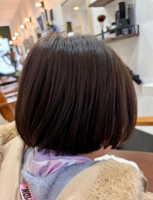 短くカットしました!! 2026/1/16 こんにちはテルソの田中です。 暖かい様な寒い様な寒い様な暖かい様なって感じの気候ですね。 さて先日の小さいゲスト。Hちゃん。 例の如くビフォーは撮ってませんが、ばっさりルーズなレイヤーボブにカットしました。 最初は、ぐずって「切りたくない」と言っていましたが、やっぱり女の子ですね。鏡の前に座ると、笑顔になって、動画も見せながら切らせてくれました。 最後はご満悦な感じで、結果オーライでした。。。