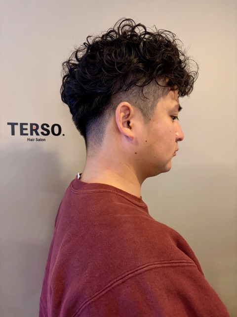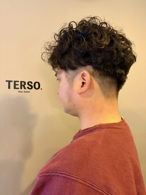メンズのハードカール 2026/1/7 こんにちはテルソの田中です。昨年年末に御来店のS様。久しぶりにハードカールのオーダー。全体を2セクションでアンダーを3mmに刈り上げてオーバーをグラデーションとレイヤーのミックスでカットして、13mmくらいのロットでランダムに強めのカールにしました。 リーゼント風にオールバックにカッチリしてもよし、前髪おろしてラフに仕上げてもよし。最近はホントに、メンズのカールスタイルは増えています。お仕事上カラーが出来ない方はぜひオススメです。ぜひぜひ、御来店お待ちしておりまーす♪。。。